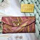 FEN手工小鋪-F系列-單層款布紅包袋-美國限量薄棉布暗紅燙金羽葉布紅包袋-手作布紅包袋-零錢包-萬用收納包-口罩收納包-存摺包-現貨款
