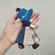 手工靛藍棉質小女孩鑰匙扣。可愛小女孩獨特精緻的鑰匙扣。可愛的混合圖案裙子,搭配可愛的帽子和木珠裝飾。這是一款獨一無二的手工製品,可以作為送給自己或您所愛之人的禮物。