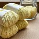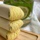 檸檬色(れもんいろ): 日本傳統色定義為略帶綠味的輕淺黃色,與一般台灣常見水果檸檬(或稱萊姆)同名同義。本批染製的顯色程度非常好,明度偏高, 該色單獨使用或搭配其他同色調線材都各有風味。