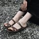 復古文青 真皮涼鞋 平底兩穿牛皮拖鞋 - 其他女皮鞋 - 真皮 咖啡色
