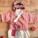 奶油虎刺繡提花開襟上衣 / 桃粉、奶油虎刺繡提花帽 / 桃粉、中式燈籠褲 各一件