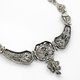🏛️ 這件珍罕的古董項鍊,出自 19 世紀歐洲流行的 伊特魯裡亞復興風格(Etruscan Revival),其靈感來自古代伊特魯裡亞文明的金工藝術。以純銀為材質,並運用精緻的 掐絲細工(filigree) 技法,編織出繁複對稱的幾何與花葉紋樣,展現極致的工藝細膩度。