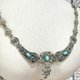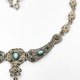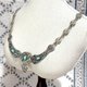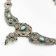項鍊中央與鏈節間鑲嵌溫潤的綠松石(turquoise),以鮮明的藍綠色調點亮銀質底色,傳遞出古典與神秘兼具的美感。其設計既有古代飾品的莊嚴,又帶著 19 世紀歐洲新古典主義的浪漫格調。