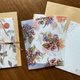 每組內含兩層卡片.展開後有一張書寫卡.皆為竹工凡花手繪設計印製而成,