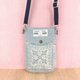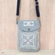 包包主體布用印有蕾絲圖案的棉布及先染布製作, 袋蓋有加一個布標, 袋底兩側有打摺, 包包會澎澎, 很可愛,除了可放手機, 前面還附有一個口袋可以放些東西非常便利 , 運動健走時隨身背, 美觀兼實用喔!!