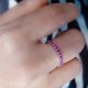This stunning little band was designed with the purpose of sitting flush with most styles of engagement rings. It is also perfect for stacking with your favorite stackable bands. All stones come from the same parcel and are hand-chosen to make sure the rosy pink hue flows seamlessly throughout the band.