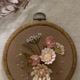 - ✦《佇足於芳菲的季節》掛畫v.s.擺件 ✦ 整體尺寸:直徑約14cm ✦ 材質說明:日本造花液、銅金線、樹脂框、棉布、法國繡線、玻璃珠、樹脂珍珠、裱褙卡紙 ✦ Handmade in Taiwan.