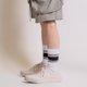 美式復古條紋中高筒運動襪/ 純棉襪款穿著極舒適柔軟/ 萊卡纖維賦予襪子極佳持久的伸縮彈性/ 竹炭腳跟及腳尖運用有抗菌消臭效果/ 毛巾底有如氣墊般減壓避震/ _復古潮流襪_