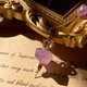 破曉的森林小徑,大地渲染金黃的光芒,酒神巴克斯在少女Amethyst幻化的白水晶雕像前,落下懺悔的淚,手中的葡萄酒滴落,清透的白水晶染上紫色的夢幻,親手為妳戴上冰清玉潔的永恆。