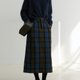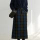 藍綠格紋 英産Moon進口復古羊毛呢半身長裙 頂級面料秋冬點睛