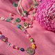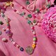材質:淡水珍珠、珍珠母、玻璃珠、塑料珠、水晶、鋯石鍍金和 14k 鍍金扣