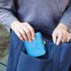 本體上方使用帶有女性典雅特色的經典黃銅五金珠扣做固定,內裡為大空間零錢收納袋X1,後方透過黃銅五金壓扣做固定,內裡卡片夾層X6,鈔票夾層X1,輕巧典雅的尺寸可時刻帶給您便利的拿取與優雅的收納。