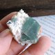 --這顆馬島的日光螢石帶著白色母岩,無噴油狀態,打燈顏色是霧透