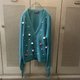 無地のカーディガンにレトロな数字ボタンとカラフルなポンポンを装飾した完全一点物のリメイクカーディガンになります。
