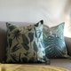 aLoveSupreme/南非手繪雙面抱枕套_湖水綠非洲植物園/藍色龜背葉 - 枕頭/抱枕 - 棉.麻