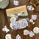 夜空のお茶がフレークシールになりました。 夜になっても眠れない仔に お月様を浮かべたお茶とスイーツで うさぎさんたちの夜のお茶会が始まります♪ 【内容】 ・シール…8種類×4枚=32枚入り ・サイズ…各種 約2.5cm角ほど (ティーポット…2.3×3.5cm) ▲ご注意▲ こちらの商品は、家庭用インクジェットプリントで印刷して、カッティングマシーンで制作しております。 1㎜程のカットラインのズレがある場合等がございます。 またインクは水濡れには弱いですのでご注意ください。
