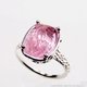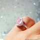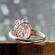 優しいピンクの中に虹色が輝くモルガナイトを、唐草と透かし模様の台座にセットしました。
