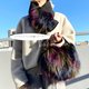 ブラックをベースにカラーミックスのとっても可愛いエコファーで作ったラウンドバッグです♪