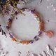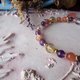 ●材料:橙月光(約6m)、金髮晶(約7.5m)、紫晶(圓珠約5.7m、切面約6.5m、桶珠約10X7.5m)、瑪瑙月亮(約11*6m)小滴流(萬能扣)