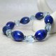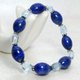 - 橄欖形帶金沙 天然青金石 藍拓帕石 銀飾手鍊