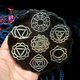 這款能量杯墊選用來自俄羅斯的高純度次石墨 (Elite Shungite),具備能量淨化與電磁波防護作用。雙面設計,一面為銀色七脈輪金屬符號,另一面則以六芒星為中心,放射出黃銅線繞製的水晶柱,以及獨特的荷葉邊造型。結合現代美學與功能性,為你的日常空間注入潔淨與平衡的療癒能量。