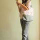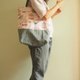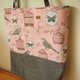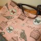 手工製作縫製帆布托特側肩包 粉色拼灰色小鳥圖案