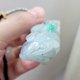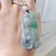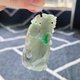 整體晴底,幾抹淺晴偏白,貔貅尾部帶有一點點的黃,底部一抹烏雞,右前足是漂亮的油綠。