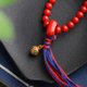 我們堅持傳統工藝打磨,拒絕上膠上色上蠟,大部分商家採用機器打磨,珠子做膠處理,這種珠子越戴越難看,破壞了硃砂的天然靈性,甚至對人體有害,我們不惜人工成本,用砂紙一遍一遍重復打磨,直到珠子呈現出天然的油光亮澤。