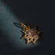 這件來自新加坡的罕見小尺寸星辰吊墜以手工切割打磨的古董鑽石比擬星辰發散的光芒。每一顆的鑽石形狀各異,切割面不規則,反射面不如今日的鑽石工整閃耀,也不受當今鑽石4C的規範,因其年歲早於後人制定的規則,展現最原始的玫瑰切割(rose cut):切割方式不是為了閃耀,而是希望保留鑽石的最大重量。這樣的鑽石額外充滿各型,有著濃厚的手工感與時間感。新加坡的玫瑰切割鑽石與歐洲古董珠寶的玫瑰切割又有所不同,因此有專屬的名稱 intan:代表細碎如星的手切老鑽。