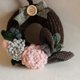 布棉花100%自創的毛線娃娃,充滿冬季氛圍的 深咖啡色花圈