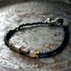 トゥアレグシルバーと古代瑪瑙、oldチンシルバー&oldオリッサブラス、漆黒&インディゴブルー&ブルービーズを繋いだブレスです。