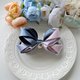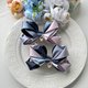 跟以往只有單面裝飾的蝴蝶結不同,比起平著配戴、更適合直立的使用;因此這系列兩面的蝴蝶結中心都選用精緻顯眼的造型合金吊飾做裝飾。