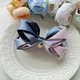 使用金屬感的漸層色織帶製作出自行發想的拼接蝴蝶結相交夾,獨特且立體,不會到處撞款。