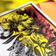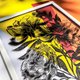 該圖像首先由油氈塊雕刻而成,然後使用有機玻璃上的優質彩色油單獨手工壓制。