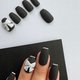 ショートバレリーナの形に、マットブラックのベースと細フレンチを合わせた