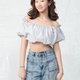 像雲朵般的澎鬆,採用短版剪裁,搭配荷葉袖甜美加倍!