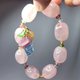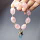 **1.圖上粉晶隨型珠長約17.5mm、寬約14mm,海藍寶花生長約18.5mm,整體手圍約16cm。**