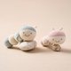 * 毛毛蟲搖鈴:一球一球的柔軟身體,造型可愛,更是寶寶練習抓握力的絕佳工具。內置的鈴鐺放置在小塑膠盒內,水洗不會生鏽。