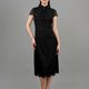 傳統工藝,新穎設計 Qipology是一個香港設計師品牌,致力改良傳統服飾,在保留製作傳統旗袍所需的精湛工藝同時,以別出心裁的設計為旗袍注入新活力,讓中式衣著變得時尚不老土。 關於設計: 這款小鳳仙袖蕾絲旗袍選用精緻花卉蕾絲面料,內襯設計提升舒適度與修飾效果。A字版型搭配中長茶會裙長,優雅大方,並以精巧玉鈕點綴,增添典雅細節。無論正式場合或日常聚會皆能輕鬆駕馭,搭配黑色高跟鞋或芭蕾平底鞋,即可展現不同風格魅力。 布料:蕾絲 顏色: 黑色