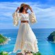 - 長裙採用全松緊腰部和抽繩、分層荷葉邊和毛邊流蘇