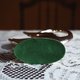 餐巾架底部鋪了綠色絨布,是那個年代高品質銀器常見的細節,為了保護木桌,也為了讓銀器更穩穩地停在原位。