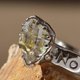 幅広(5㎜)のリングに「No cat,No life.」の文字を掘り、文字の間にとても綺麗なオイルインクォーツを留めました。