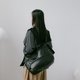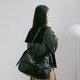 展開時,線條俐落簡約,提供寬敞的收納空間;雙拉鍊造型拉頭點綴細節,與自然皺褶紋理相互映襯,營造隨性而富有造型感的視覺效果。