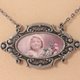- Vintage Frame Retro Picture Flower Girl with Pink Roses Pendant Necklace Jewelry Gray Sepia Grey Beige Greyge Taupe Powder Pink Dusty Rose Vintage Photo Picture in Oval Antique Silver Frame Pendant Necklace Handmade Vintage Style Victorian Epoch Jewellery Necklace Girl Woman Jewelry Gift for Her