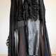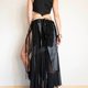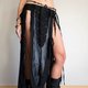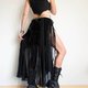 Long black split skirt with tie closure. It is decorated with faux leather lace and fabric braids. Free size