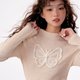 - ziziFei秋冬美式復古長袖T恤上衣蝴蝶半高領修身顯瘦針織打底衫女