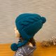 有別於一般的毛線帽,於後帽子一側做麻花紋路,後下方 有做開衩,更顯活潑造型。