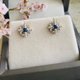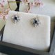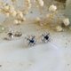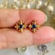 These are vintage-inspired sapphire stud earrings, featuring heated sapphires from Madagascar. The stones are a deep blue, round-cut at 3mm, with a clear, glassy clarity and excellent brilliance. The design evokes a vintage Greek aesthetic, showcasing beautiful craftsmanship. 🥰