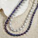 這款項鍊以經典黑灰為主調,結合珍珠的柔和光感與銀色的清冷質地,呈現優雅沉穩又具現代時尚的氣息。