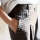 毛呢格紋五分褲以經典的格紋圖案搭配溫潤的毛呢質感,展現出濃厚的英倫氣息與秋冬質感,